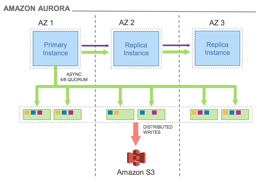 Primary Instance(Master)에서 write가 발생하면 데이터를 쓰면 6개의 스토리지 노드로 병렬로 전송