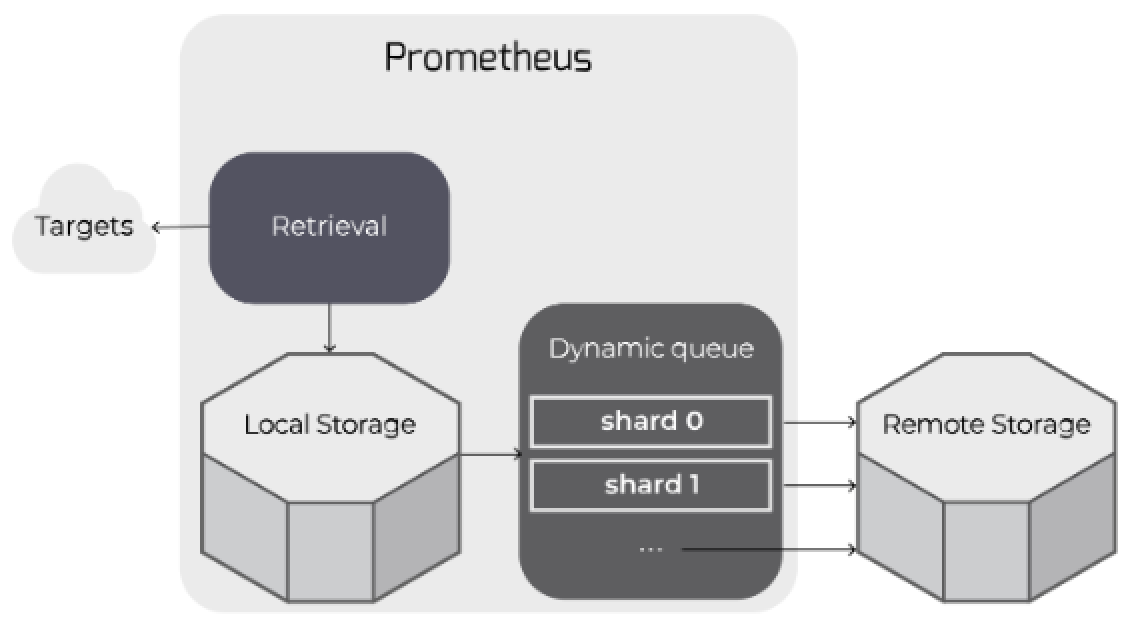 이를 통해 Prometheus는 최소한의 구성으로 필요한 리소스만 사용하면서 remote 스토리지를 관리 할 수 있습니다.