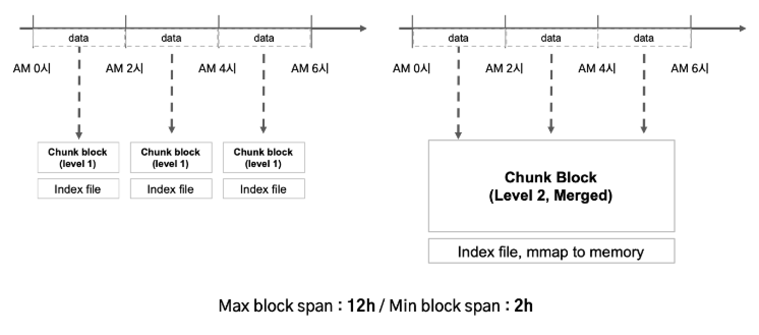chunk 블록은 백그라운드에서 더 긴 시간의 블록으로 병합 됩니다.